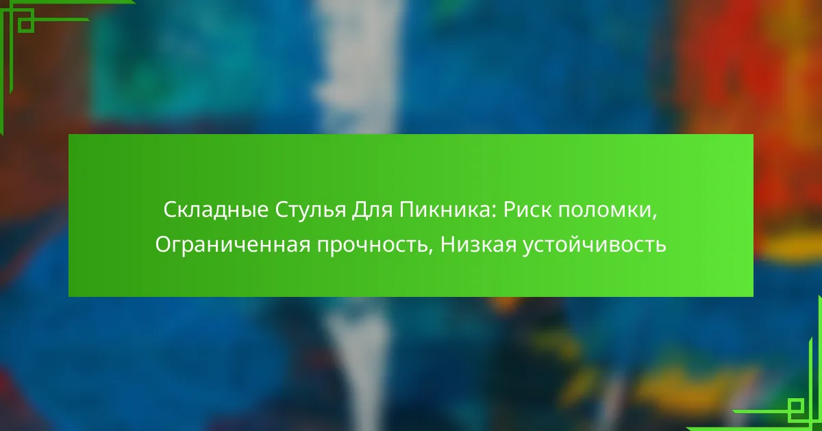 Складные стулья для пикника могут быть удобными, но они также несут определенные риски, такие как поломка, ограниченная прочность и низкая устойчивость. Эти факторы могут повлиять на безопасность и комфорт во время отдыха на природе.